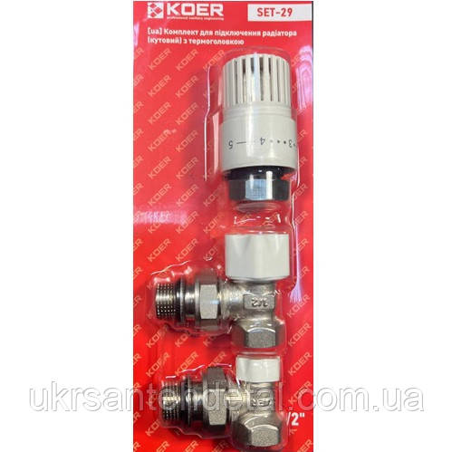 Набір кранів для радіатора з термоголовкою кутовий KOER (Чехія)
