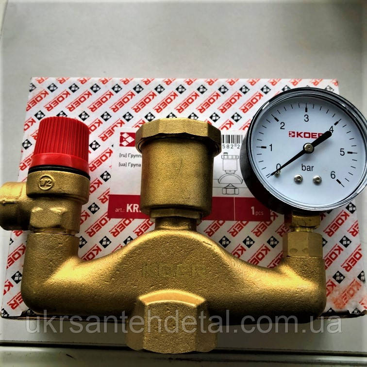 наступних функцій: захист від перевищення тиску у системі; відведення із системи повітря та газів; індикація тиску у системі лише на рівні манометра. Група має додатковий різьбовий вихід для приєднання розширювального бака.